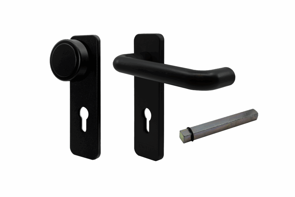 Béquille + béquille sur plaque en plastique noir avec trou de cylindre européen
