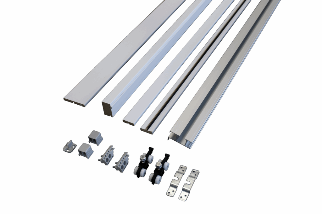 Le KIT FAST vient compléter notre gamme de châssis à galandage. En effet, l’ensemble de nos autres modèles ont été conçus pour être inséré à l’intérieur d’un mur à enduire ou d’une cloison en plaques de plâtre. Le KIT FAST permet de répondre à un nouveau besoin auquel les autres châssis ne peuvent pas répondre : il vient s’installer en applique à l’extérieur de la cloison et permet ainsi au vantail installé (non fourni) non pas de coulisser dans le mur mais de glisser le long de ce mur.